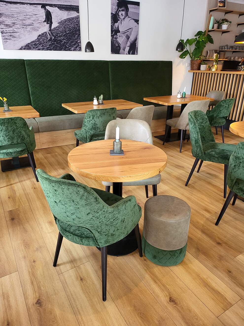 Wie widerstandsfähig ist Eiche massiv im Gastronomiebereich?Eiche zählt zu den härtesten einheimischen Holzarten. Sie ist gut für den professionellen Einsatz in der Gastronomie geeignet, da sie eine hohe Druck- und Stoßfestigkeit bietet. Die Oberfläche ist wahlweise geölt oder lackiert und daher bestens gegen Flecken und Feuchtigkeit geschützt.
